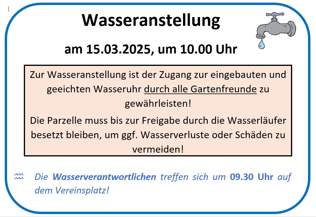 Sofern Ihre Kaltwasserzähleruhr getauscht wurde, und dies nicht durch die Firma Plus erfolgt ist, bitte den Nachweis per Mail oder im Briefkasten der KGA bis zum 07.03.2025 beibringen!